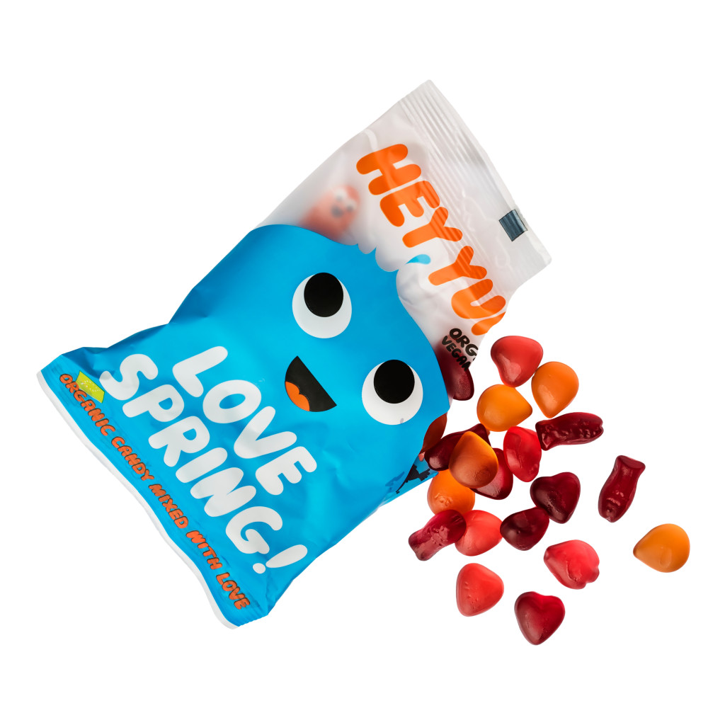 Glükózszirup*, cukor*, zselésítőanyag (pektin), savanyúságot szabályozó anyagok (kálium-tartarátok, nátrium-tartarátok), sav (citromsav), természetes narancsaroma, természetes őszibarack aroma, természetes ribizli aroma, természetes eperaroma, természetes kurkuma aroma*, gyümölcslé-koncentrátum* (bodza, eper), bevonóanyag (karnaubaviasz*).