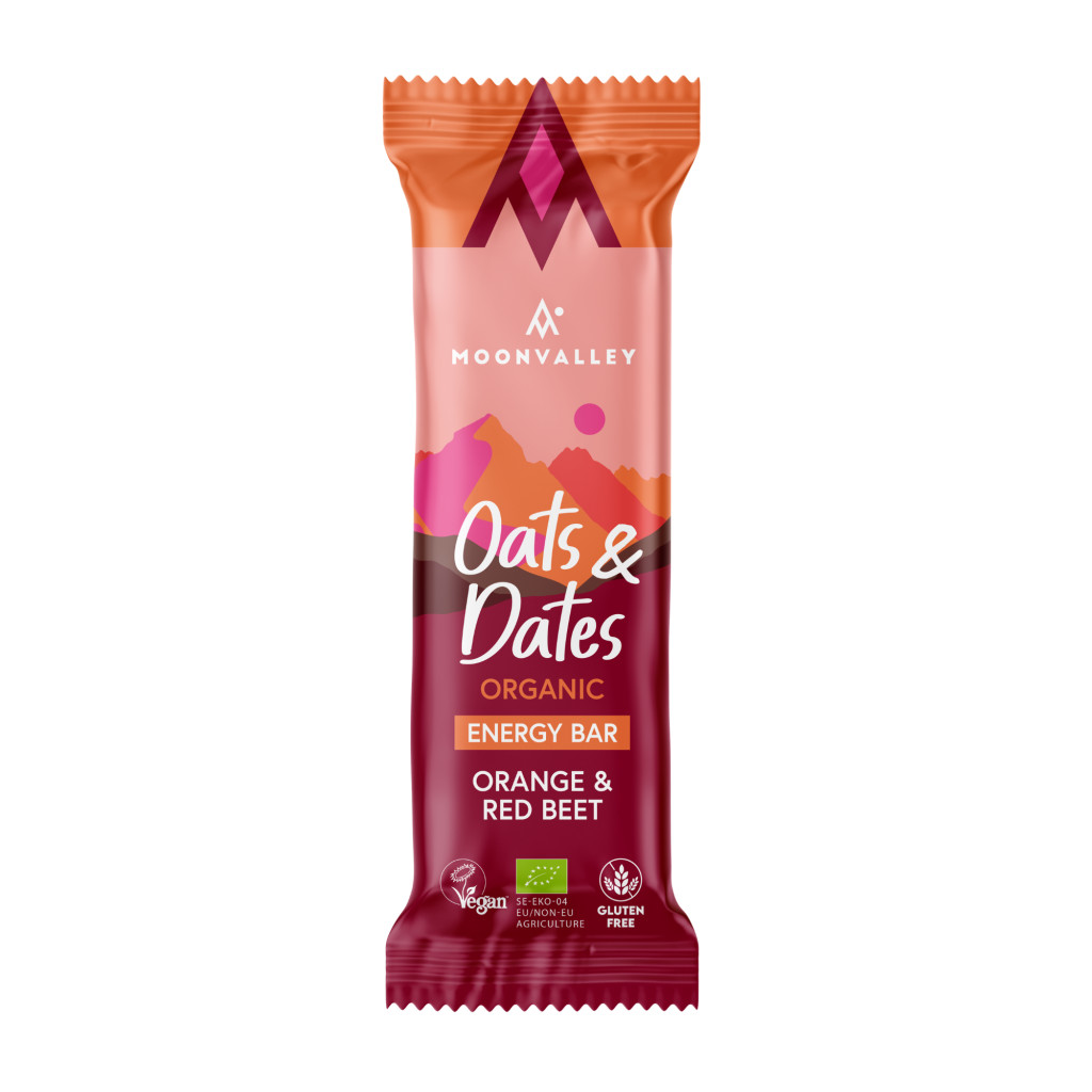 Datolyapaszta (39%), rizsszirup, zab (17%), borsófehérje, kókuszreszelék*, kakaóvaj*, céklapor (0,45%)*, só, természetes aromák (citromolaj, narancsolaj 0,2%, aroma)